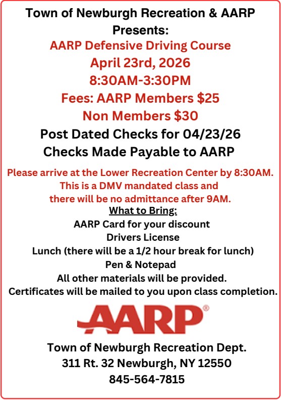 | Senior- AARP Defensive Driving Course | Seniors | 1/12/2026 | 120 KB | |